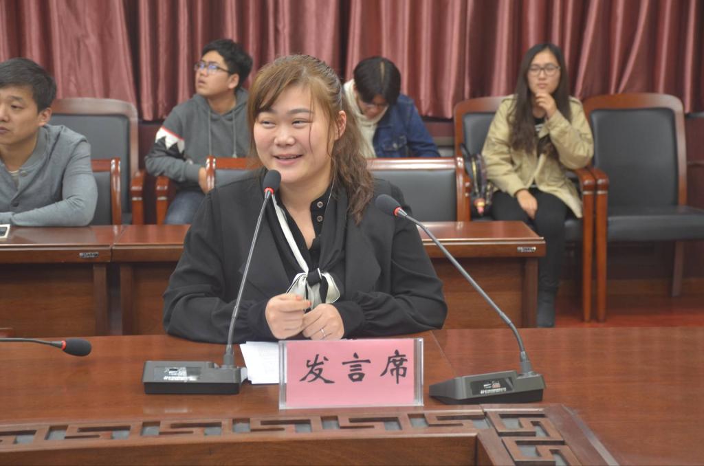 管理工作代表院团委书记石宇珺老师进行发言