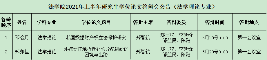 BWIN必赢官方2021年上半年研究生学位论文答辩会公告(法学理论专业)