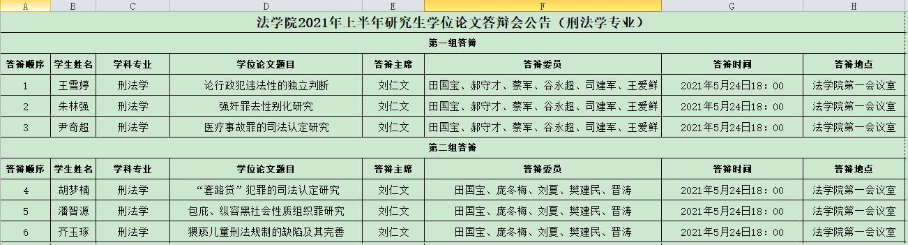 BWIN必赢官方2021年上半年研究生学位论文答辩会公告(刑法学专业)